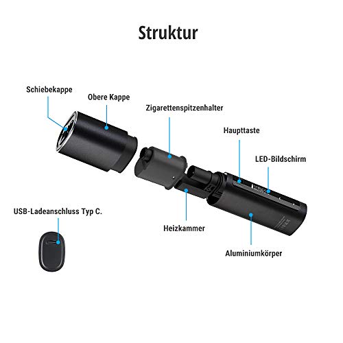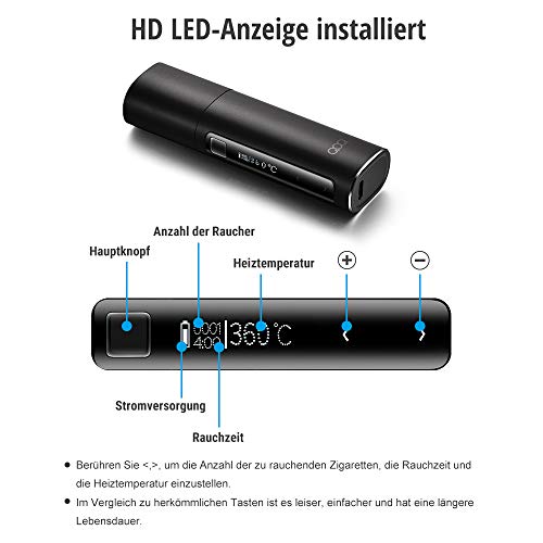 ❤【LCD-Display, Touch Control】 Dieses Gerät mit LCD-Bildschirm ausgestattet, es zeigt Ihnen Temperatur erhitzt, wokring Dauer, Stockzahl, Batteriestand usw. können Sie die Taste berühren gentlely das Gerät zum opeate. Vorheizzeit 15 bis 25 Sekunden einstellbar Temperaturbereich beträgt 300 bis 360 ℃.