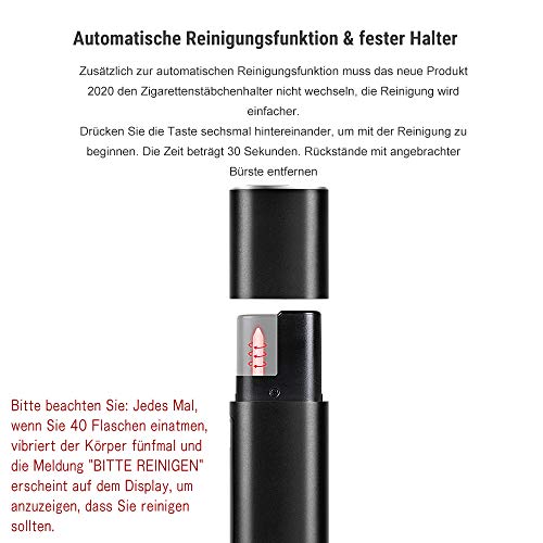 ✔️【Selbstreinig】 Um das Antrieb zu reinigen, einfach schnell klicken Sie auf die Schaltfläche 6-mal, also wird es „CLEANING TIME“ anzuzeigen, und starten Sie den Stift erwärmen sich der Staub machen abfallen. Das Antrieb wird Sie mit Bildschirm „Bitte reinigen“ benachrichtigen, wenn Sie 40-Sticks genossen. Eine Reinigungsbürste ist, um Hilfe der Reinigung die Kammer zur Verfügung.