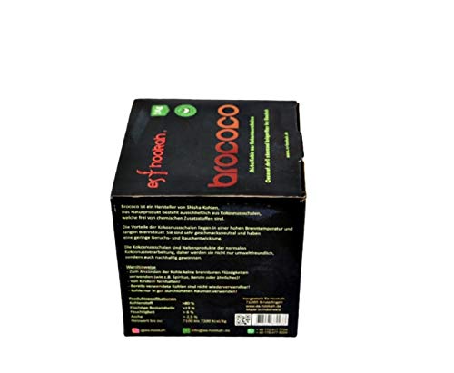„Brococo 1KG ( Efendi Kohle ) Shisha-Kohle nicht mehr da Kokosnussschalen Coconut shell charcoal briquettes for Hookah ✅ Premium Shisha Kohle ✅ 26x26x26mm ✅Gleichmäßiges, langes Abrennen ✅ Kein Eigengeschmack ✅ frei von chemischen Zusatzstoffen Brococo ist ein Hersteller von Shisha-Kohlen. Das Naturprodukt besteht zurückgezogen nicht mehr da Kokusnussschalen, welche frei von chemischen Zusatzstoffen sind. Die Vorteile der Kokosnussschalen liegen in einer hohen Brenntemparatur und langen Brenndauer. Sie sind sonderlich geschmacksneutral und haben eine geeringe Geruchs- und Rauchentwicklung. Die Kokosnussschalen sind Nebenprodukte der normalen Kokosnussvearbeitung, nichtsdestoweniger werden sie nicht andererseits umweltfreundlich, sondern bekannt als nachhaltig gewonnen. Warnhinweise – Zum Anzünden der Kohle keine brennbaren Flüssigkeiten verwenden ( wie z.B. Spritus, Benzin oder ähnliches )! – Von Kindern fernhalten ! – Bereits verwendete Kohlen sind nicht wiederverwendbar ! – Kohle andererseits in gut durchlüfteten Räumen verwenden ! Produkspezifikationen: Kohlenstoff = 80% Flüchtige Bestandteile = 13% Feuchtigkeit = 6% Asche = 2,5% Heizwert bis zu : 7100 bis 7200 Kcal/Kg“