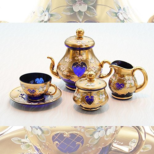 Wunderschönes und nicht alltägliches Kaffeeservice, bestehend aus 6 Tassen + 6 Untertassen + 1 Kanne + 1 Milchkännchen + 1 Zuckerdose, in einem atemberaubendem Design mit aufwendiger Handbemalung und in schwerer Erledigung.