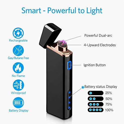 Batterieanzeige: Die 4 blauen LED-Leuchten, informieren über den Status des Feuerzeuges, verpasse also absolut nie die Chance, es früh genug aufzuladen