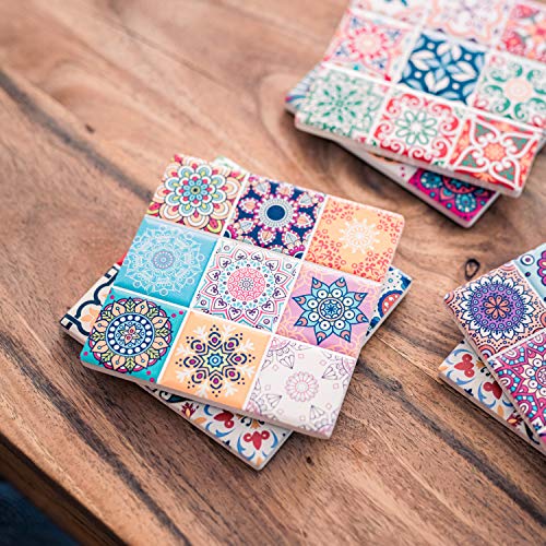 Flanacom Boho Design Untersetzer 6er Set – Dekorative Keramik Untersetzer für Glas, Tassen, Vasen, Kerzen und Töpfe…