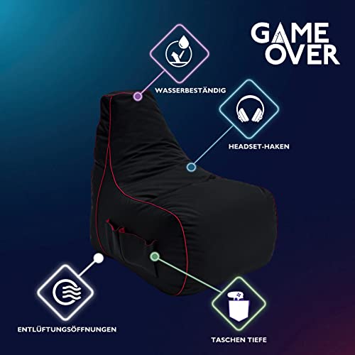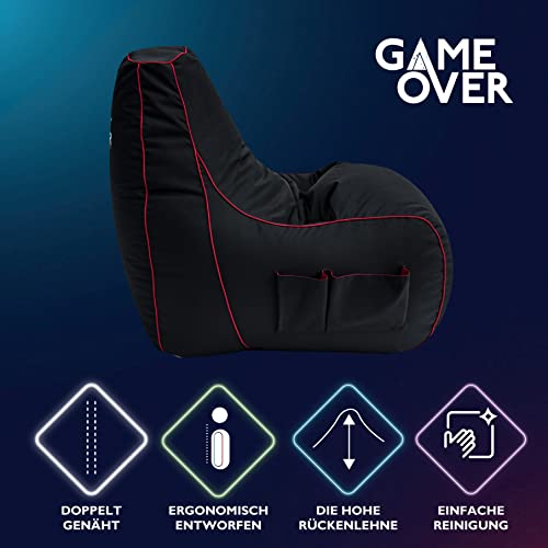 Game Over Video Spiele Sitzsack | Indoor Wohnzimmer | Seitentaschen für Controller | Headset Halter | Ergonomisches…