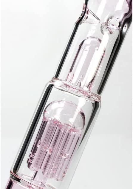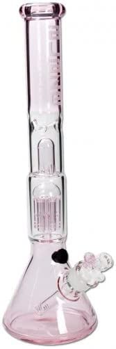 Die sämtliche hochwertigem Borosilikatglas handgefertigte, kolbenförmige Ice-Bong unserer Premiummarke Blaze Glass bringt angenehme Kühlung alias in hitzigen Zeiten. Dafür sorgt zuerst der 6-armige Baumperkolator, dessen kräftige Luft- und Wasserverwirbelungen eine gute Rauchabkühlung zur Spalier haben. Müll- und Aschepartikel werden währenddessen herausgefiltert. Die Spritzschutzkuppel bewirkt Plan B Luftwirbel und zur coolen Krönung halten die drei Dornen eingefüllte Eiswürfel. Die Spalier: Sanfterer, lungenschonenderer und milderer Rauchspaß bei vollem, aromatischen Geschmack! Das Blüten- und Kräuterköpfchen hat praktischerweise ein fest integriertes Siebchen. Dessen ungeachtet lässt sich der Kopf durch den fingergerechten Griff, der gleichzeitig ein zuverlässiger Wegrollschutz ist, leicht herausziehen. Ein Bongclip sämtliche Kunststoff sorgt für eine stabile Verbindung von Köpfchen und Shillum, welches durch Diffusorschlitze ebenfalls für Luft- und Wasserwirbel sorgt. Das Kickloch kann mit dem beiliegenden Schliffstopfen verriegelt werden, darob die Reinigung der Glasbong einfacher ist. Das sandgestrahlte Logo von ‘Blaze Glass‘ ist dezent und befindet sich auf dem Zugrohr. Die Wandstärke von 5mm gibt der Wasserpfeife die notwendige Robustheit.
