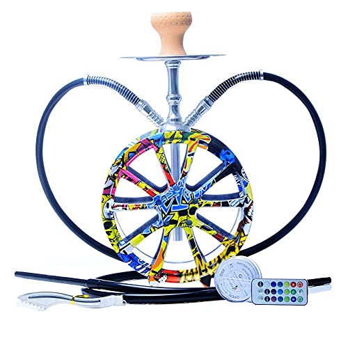 GEUKO Raddesign Acrylhuka Shisha-Rohr Multicolor Narguile Doppelschläuche Led-Licht Chicha Sisha Sheesha Mit Nargile…