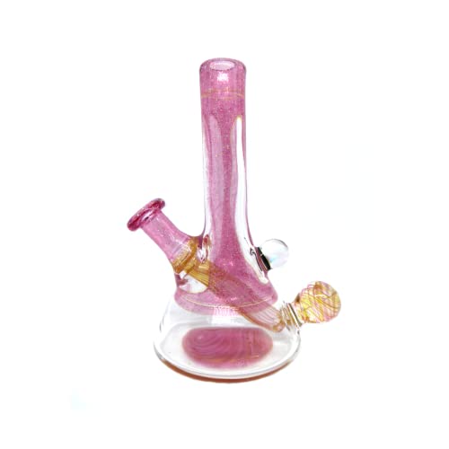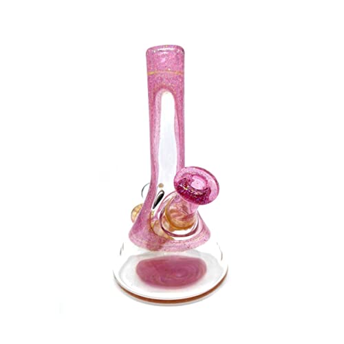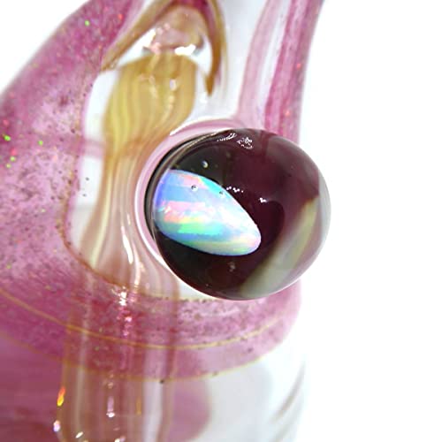 Glasbong Karma Rainbow Tube Mundgeblasen Bong aus Glas mit Opal Stein / 16cm Hoch / 75mm Diameter/Gold Fumed 14mm Bowl…