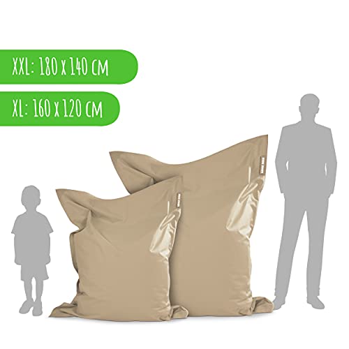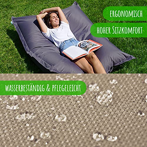 ✅ INDOOR & OUTDOOR XL: wir haben es zum Ergebnis gesetzt, den besten Sitzsack für Sie zu fertigen. Das Terminierung ist unser 120×160 cm XL Premium Bean Bag Chair mit einem Füllvolumen von 270 Litern und breiter Sitzfläche. Seine professionell verarbeitete Oberfläche, bestehend aus 50% Polyester und 50% PVC, macht den Sitzsack ✅ extrem robust und nahezu unzerstörbar. Das große Bodenkissen ist ✅ wasserfest und schmutzabweisend. Dauerhaftem Regen sollte der Sitzsack nunmehr nicht ausgesetzt werden.