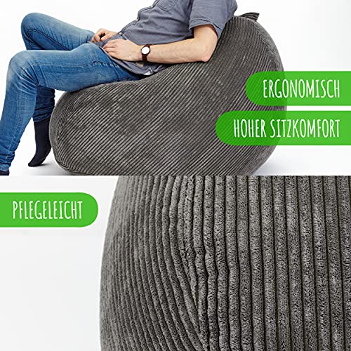 ✅ VIELFÄLTIG EINSETZBAR: Sie können einfach die Füße hochlegen und sich entspannen. Unser Cord XL Sitzsack kann als Liege, Lounge Chair, Gaming Sitzsack, TV Sessel, Couch oder Stuhl Alternative, Leseecke oder Kindersitzsack verwendet werden. Erhältlich in vielen Trendfarben: Anthrazit, Alkoholisiert, Dunkelblau, Dunkelgrau, Grau, Hellblau, Rot und Schwarz.