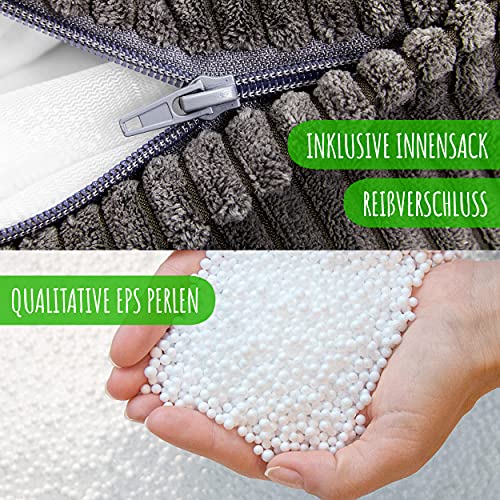 Green Bean© Indoor Sitzsack 90x110cm EPS-Perlen Füllung & Cordstoff Kuschelig Weich Waschbar – Drinnen Bodenkissen…