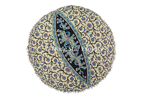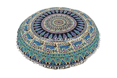 Große Runde Boden Kissen, Mandala Throw Kissenbezüge 32″, dekorative Hocker Osmanischen, indischen Outdoor Kissenbezug, Boho Pom Pom Kissen Shams