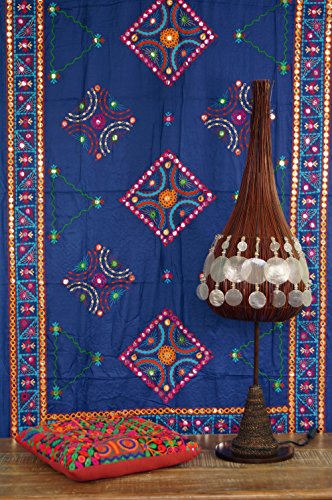 GURU SHOP Besticktes Tuch mit Spiegelchen, Indisches Boho Wandtuch, Pareo – Blau, Baumwolle, 220×110 cm, Bettüberwurf…