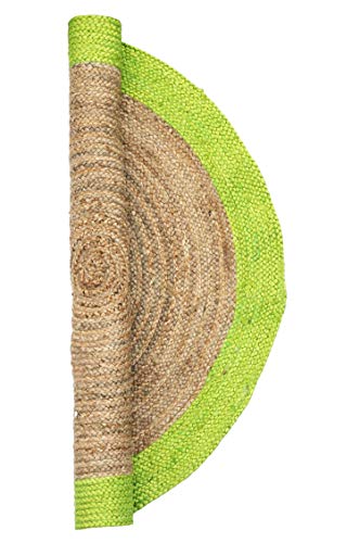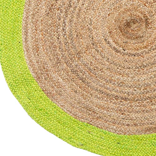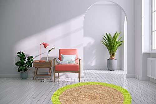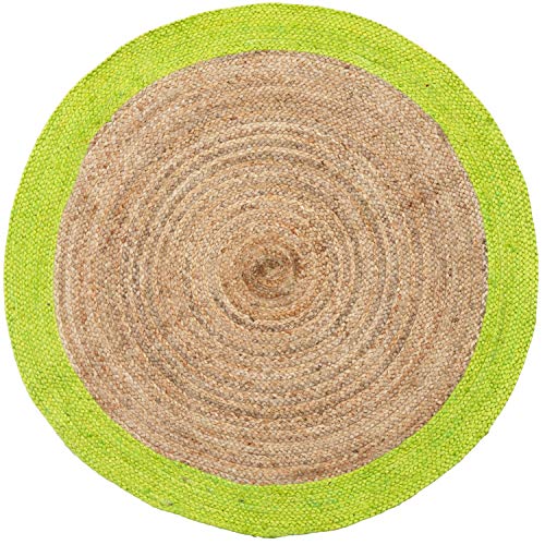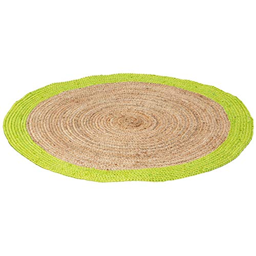 Größe: 120cm Durchmesser 1cm Vollschlank | Material: Jute geflochten | Farbe: Natur Beige und Grün | Form: Rund.