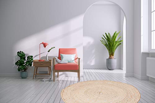 Die Form ist Rund, die Farben sind orientalisch natürlich, Diese runde Juteteppiche passen hervorragend als authentische Designer Dekoration für kreative Moderne Deko Ideen. Sehr gut angemessen als Wohnzimmerteppich unter den Wohnzimmertisch, Belastbarer und Langlebiger Kinderteppich im Kinderzimmer, Natürlicher Schlafzimmerteppich vor dem Bett, Wandteppich als Natürliche Wanddekoration an der Diele oder Esszimmer, oder aka als Geburtstagsgeschenk für Männer und Frauen, Geschenk an Muttertag sehr