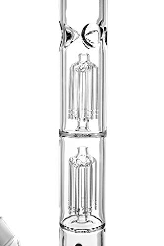 Die Beaker Bubble Double Perc ist eine voluminöse Glasbong im Beaker-Format mit geradem Zugrohr und 18er Schliff. Die Bong besitzt Eiskerben und ein Kickloch. Sie wird mit einem 18er Standardkopf und einem 120mm langem 18.8>18.8 Diffusor-Chillum geliefert.