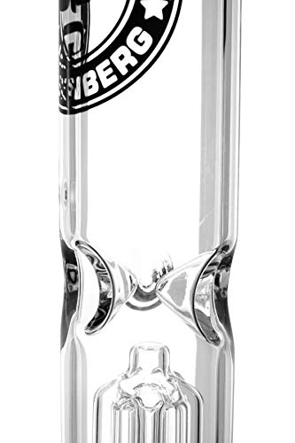 Starke Verwirbelung – Der Rauch passiert ein mehrfach geschlitztes Diffusor-Chillum. Von dort aus wird er durch 2 Perkolatorkammern im Bonghals geleitet. In beiden liegt jeweils ein 5-armiger Perkolator, der den Rauch nochmals in kleine Bläschen aufspaltet, verwirbelt und ihn dadurch weniger kratzig und unwiderstehlich kühl macht.