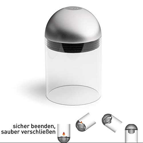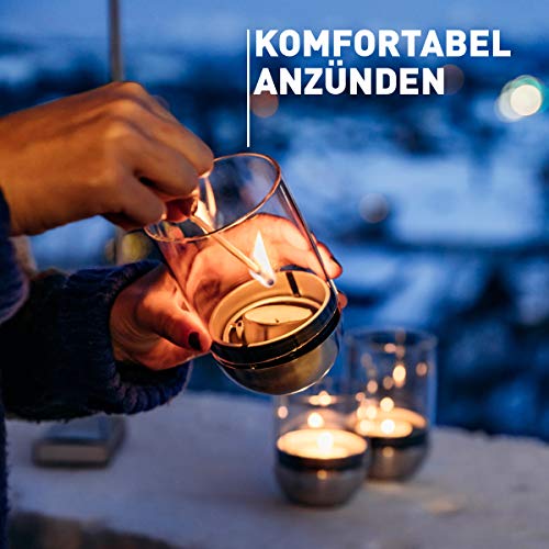 BEQUEMES ANZÜNDEN: Die Kerze bleibt schwerkraftbedingt fortwährend im Lot, dies ermöglicht ein bequemes Anzünden. Das Glas schützt Sie dessen ungeachtet vor Wachsspritzern beim Ausblasen. Ist das Windlicht umgedreht und zum Beispiel auf einen Tisch im Garten oder auf der Terrasse gestellt, ist die Kerze vor Witterung geschützt