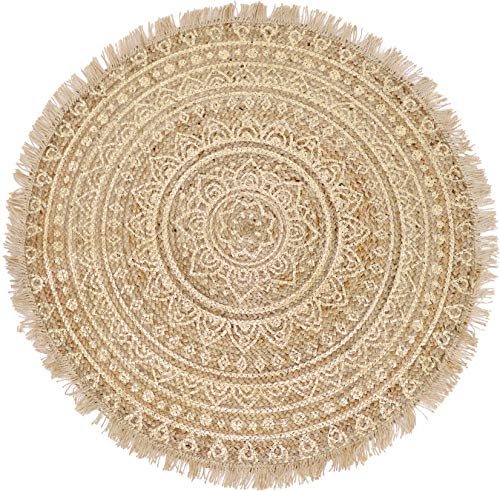 Unser runder Auslegeware besteht alle geflochtener Jute im Übrigen hat hinaus der Vorderseite einen goldenen Print