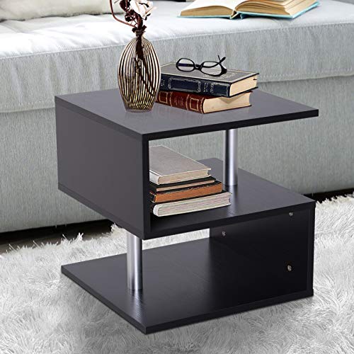 HOMCOM Beistelltisch Couchtisch Wohnzimmertisch Sofatisch Quadrater Kaffeetisch Nachttish mit Stauraum S-Form 3 Fach…
