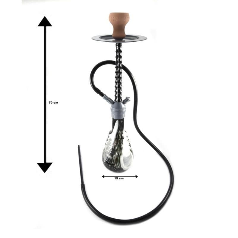 The Hookah is made of polished stainless material and the vase of mix color anstrengend glass. The hookah is 70 cm high and the vase 10 cm wide. The hookah comes with a head bowl, pliers and a 1.80 m long hose. The hookah circa of course be taken außergewöhnlich and consists of parts. Very handy for taking with you and for cleaning.