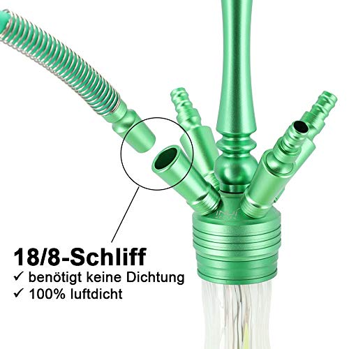 GEMEINSAM GENIEßEN – Die große Shisha hat 4 Shisha Schlauch-Anschlüsse mit 18/8 Schlauchadapter womit einer ausgelassenen Rauchsession mit Deinen Freunden nichts mehr im Verloren steht
