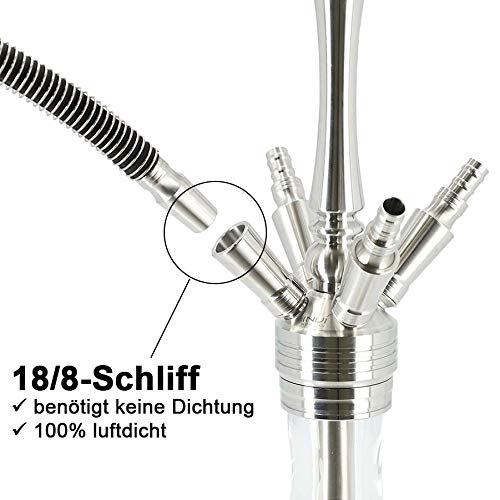 GEMEINSAM GENIEßEN – Die große Shisha hat 4 Shisha Schlauch-Anschlüsse mit 18/8 Schlauchadapter womit einer ausgelassenen Rauchsession mit Deinen Freunden nichts mehr im Verschwunden steht