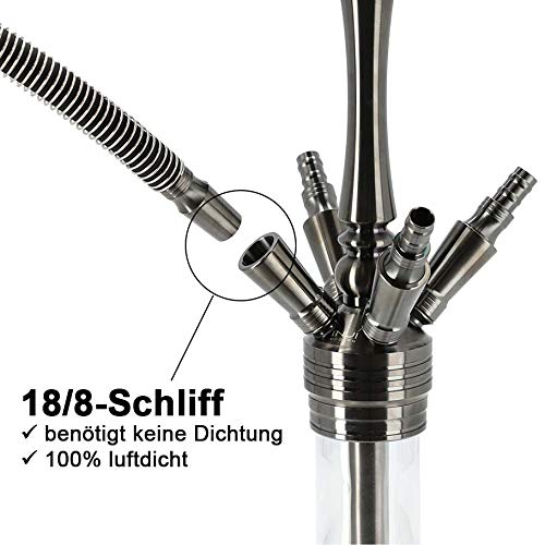 GEMEINSAM GENIEßEN – Die große Shisha hat 4 Shisha Schlauch-Anschlüsse mit 18/8 Schlauchadapter womit einer ausgelassenen Rauchsession mit Deinen Freunden nichts mehr im Verschütt gegangen steht