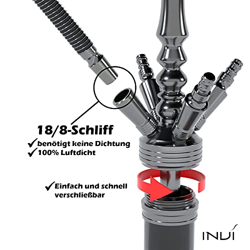 Die INVI Tesseract Shisha mit dem gelieferten Zubehör eignet sich als die beste Shisha für ein Starterset sowie die perfekte Pfeife für Profis. Das Edelstahl Shisha Set punktet durch hochwertige Materialien, welche die Premium Shisha zum Kundenliebling macht. Das Shisha Set ist erweiterbar auf 4 Schläuche welche nicht im Lieferumfang enthalten sind.