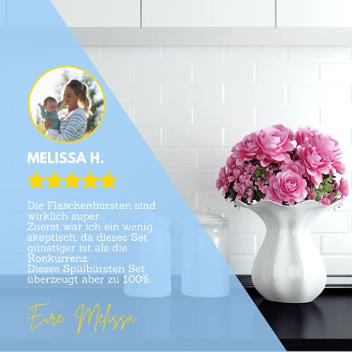 ✅ VIELSEITIG – Die kleine Spülbürste ist ideal wie Babyflaschen Bürste brauchbar, da der Bürstenkopf qua Gewiss 2,5cm in fast jede Flaschenöffnung passt.