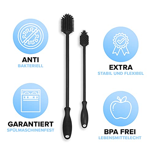 JAWAonline Spülbürsten Set – Flaschenbürste Silikon schonend und kratzfrei – Flexible Flaschenreiniger Bürste – Premium…
