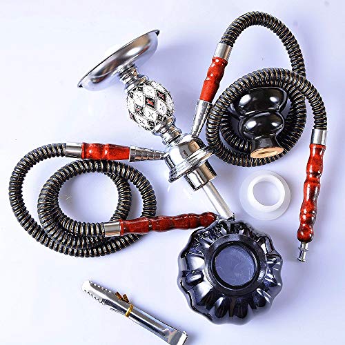 Premium-Hukahn Set: Glasvase, Welle (mit einem Aschenbecher), synthetischer Lederschlauch, Keramikschale, Kohlezzange