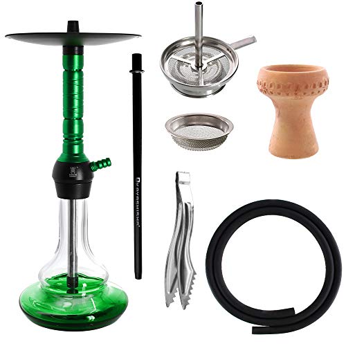 Praktisches Einsteiger Set – Die ELOX Eco Wasserpfeife besteht nicht mehr da farbig eloxiertem Aluminium. Hochwertig und robust verarbeitet ist die Shisha widerstandsfähig gegen Rost und Kalk und bietet dir im sowie abgesehen Haus Vergnügen. Gesamthöhe: bis ca. 62cm | Ohne Kopf: ca. 45cm