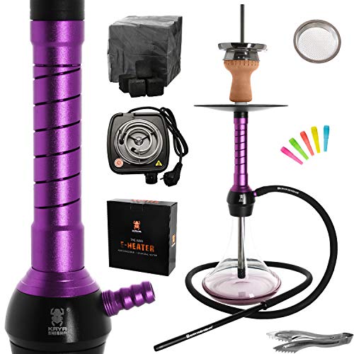Kaya ELOX Eco Seesaw Shisha Komplett Set 62cm – Alu Wasserpfeife, 1 Anschluss inklusive Elektrischem Kohleanzünder, 1kg…