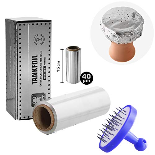Anwendungsorientiert – Um den perfekten Kopf zu bauen erhalten Sie eine Rolle 0.04mm starker Silberpapier, ein Tabaksieb, dass ein Verstopfen der Löcher verhindert und einen Folienstecher um das gleichmäßige Lochen der Aluminiumfolie zu vereinfachen.