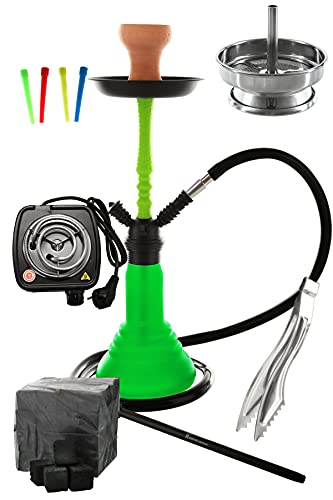 Kaya Neon SPN 480 Set Komplett mit E-Heater Shisha Kohle Kohlezange Einwegmundstücken Kaminaufsatz und Einlegesieb (Grün…