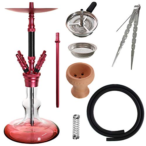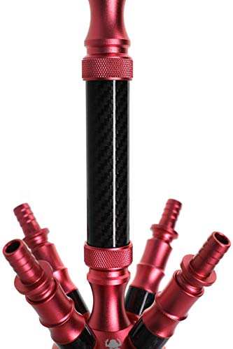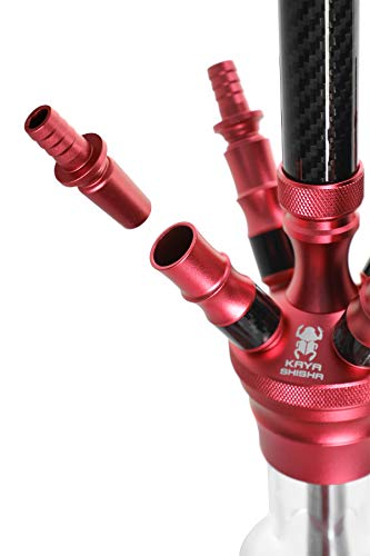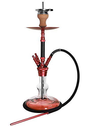 Kaya Shisha Elox Eco Carbonia – Aluminium Hookah 70cm im Carbon Look mit 4 Anschlüssen und Zubehör (Rot)