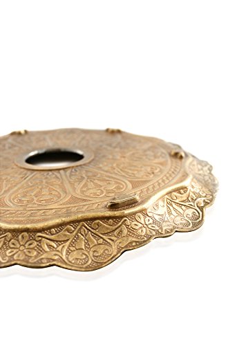 Design – Orientalisch gestalteter Ascheteller in Altgold/Messing-Farbe, per floralen Ornamenten auch gewelltem Rand. Zur Software per orientalischen Wasserpfeifen / Shishas