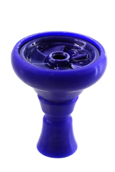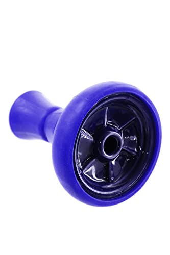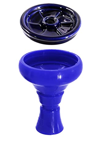 Der Einlochkopf aus Silikon und Keramik von Kaya Shisha in Zahlen: Gesamthöhe ca. 11cm | Pfannen-Durchmesser ca. 9cm | Fußdurchmesser ca. 4cm | Materialien: Silikon und glasierte Keramik – blau