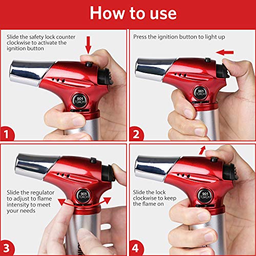 VIELSEITIG EINSETZBAR: Die Stärke der Flamme (max. 2500 ℉ / 1371 ℃) ist einstellbar, sodass Sie sie an die vorgesehenen Anwendungen denn Am Herd stehen, Backen, Basteln, Löten, Grillen von DIY-Schmuck oder Camping drauf setzen können