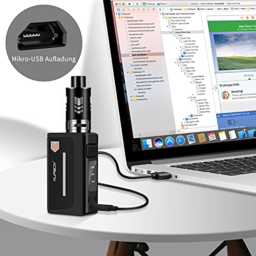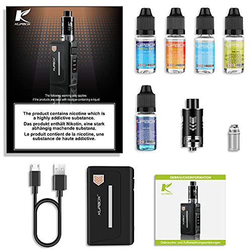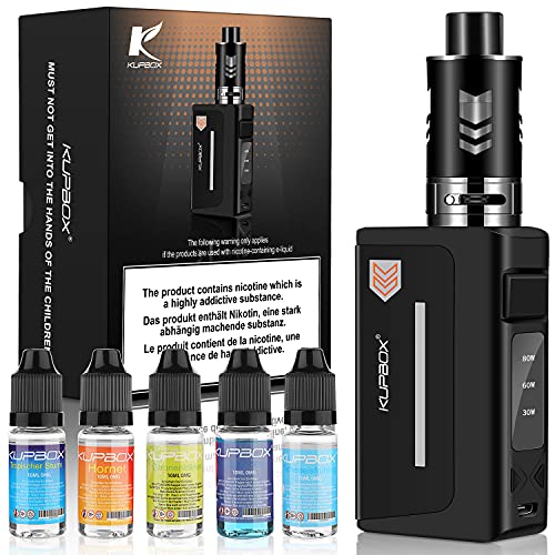 Kupbox E Zigarette Starter Set mit 5x 10ml E-liquid Ohne Nikotin, X12 Serie 80W E Zigarette mit 0.5Ohm Verdampfer, 2ml…