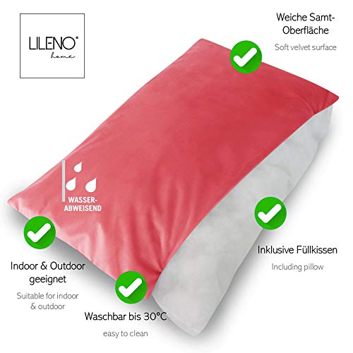 LILENO HOME Samt Kissenbezug 40×60 cm [Lachs] – 1er Set Samt Kissenhülle [mit Füllkissen] – wasserabweisender Samt…