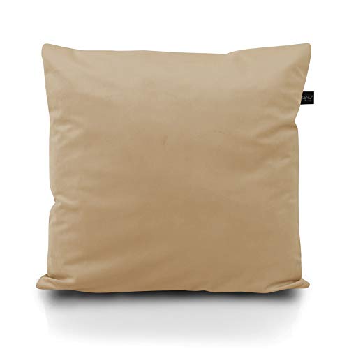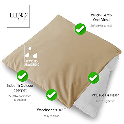 LILENO HOME Samt Kissenbezug 45×45 cm [Sand] – 1er Set Samt Kissenhülle [mit Füllkissen] – wasserabweisender Samt…