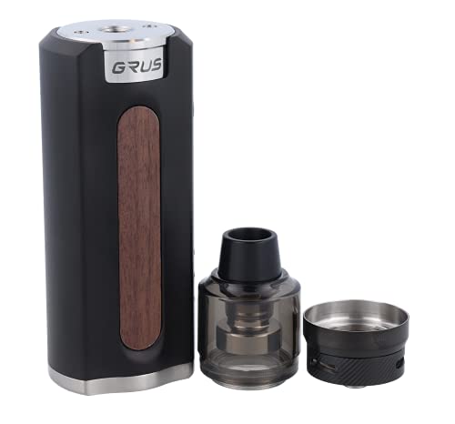 Das Lost Vape Grus E-Zigaretten Set setzt sich zusammen aus dem UB Pro Pod mit einem Tankvolumen von 5ml und dem namensgebenden Grus 100 Watt Akkuträger zusammen. Über eine 18650er, 20700er oder 21700er Akkuzelle können Sie das E-Zigaretten Set in Betrieb nehmen. Akzeptieren Sie, eine Akkuzelle ist kein Bestandteile von diesem Set und muss bei Bedarf dazu erworben werden. Der Lost Vape Grus Akkuträger erreicht im Leistungsgerelgten Modus eine Leistung von 5 bis 100 Watt. Weitere Dampfmodi Volt oder Temperatur werden vom Akkuträger alias unterstützt. Die vorgenommen Einstellunge können Sie dem 0,96 Steuer großen TFT-Display entnehmen. Zum befüllen müssen Sie den Lost Vape UB Pro Pod nicht vom Akkuträger lungern. Der Pod verfügt über eine seitliche Einfüllöffnung. Sie können bis zu 5ml von Ihrem bevorzugtem Liquid einfüllen. Mit dem Set erhalten Sie alias zwei Heads die für das Dampfen im SubOhm-Teilbereich ausgelegt. Den Lost Vape UB Pro P1 0,15 Ohm Head sowie den UB Pro P3 0,3 Ohm Head. Bitte Akzeptieren Sie dass Verdampferköpfe zu den Verschleißteilen gehören. Sollte sich eine Revision des Liquidgeschmacks bemerkbar machen, ist es von Nöten einen neuen Verdampferkopf zu verwenden.The Lost Vape Grus E-Cigarette Set consists of the UB Pro Pod with a tank volume of 5 ml and the name-giving Grus 100 Watt battery carrier. You can use the e-cigarette set via a 18650, 20700 or 21700 battery cell. Please note that a battery cell is not part of this set and must be purchased if required. The Lost Vape Grus battery carrier achieves a power of 5 to 100 watts in power regulated mode. Other vapour modes volt or temperature are also supported by the battery carrier. The settings can be found on the 0.96 inch TFT display. To fill, you do not need to remove the Lost Vape UB Pro Pod from the battery carrier. The pod has a side opening. You can fill up to 5 ml of your preferred liquid. With the set you will also receive two heads designed for steaming in the subohm range. The Lost Vape UB Pro P1 0.15 Ohm Head and the UB Pro P3 0.3 Ohm Head. Please note that evaporator heads belong to the wearing parts. If a change in the liquid taste is noticeable, it is necessary to use a new evaporator head.