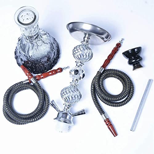 Hukahn Set mit allem: Glasvasenbasis, Hukahn-Keramikschale, Holzkohlehalter, 2 Schlauch, Kohlezangen, es ist sehr gut für Anfänger oder erfahrene Enthusiasten Angemessen