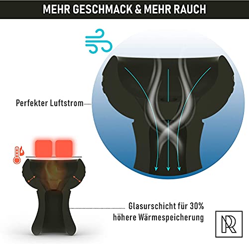 M. ROSENFELD Shisha Kopf Set mit Kaminaufsatz – schwarz Tonkopf Hergestellt In Handarbeit für MEHR Rauch inkl. Buntem…