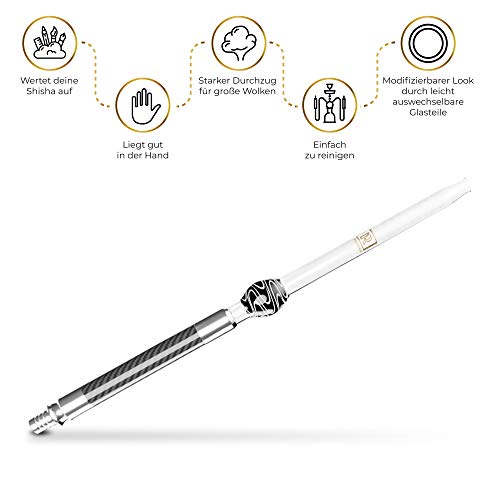 PREMIUM DESIGN: Das hochwertige Carbon Mundstueck vereint Carbon und mundgeblasenes Glas zu einem handwerklichen Meisterstück und einem absoluten Blickfang. Der Glasteil lässt sich versagen um den Stil zu ergänzen