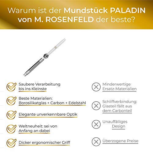 M.ROSENFELD Shisha Mundstück Glas Carbon mit Steckverbindung – Glasmundstück Mundgeblasen mit Edler Verzierung extra…