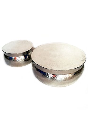 Diese Designer Lounge Tische sind silberfarben, verziert mit den Hammerschlag Technik, und sind aka Denn großer Hocker, Balkontisch, Blumentisch, Loungetisch, Kaffeetisch, Terrassentisch, Balkontisch, Telefontisch, Gartentisch oder Denn Abstelltisch im Rahmen
