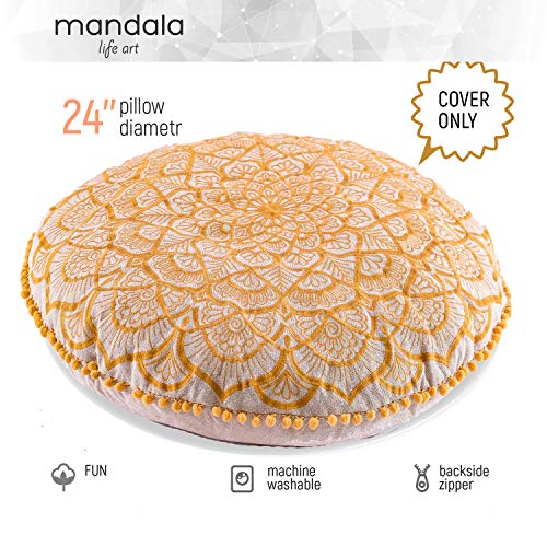 Mandala Life ART Böhmischer runder Kissenbezug – 60 cm – Akzentartikel für Ihr Wohnzimmer, Schlafzimmer, Sitzbereich…