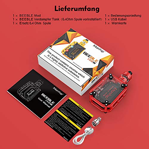 ♣3500mAh große Kapazität Akku♣ Mit 3500mAh eingebautem Akku ist Manvap BEEBLE 150W E Zigarette Sicher und langlebig. Diese kann durch Mikro USB wiederaufladen, keine Notwendigkeit, Batterie zu wechseln.