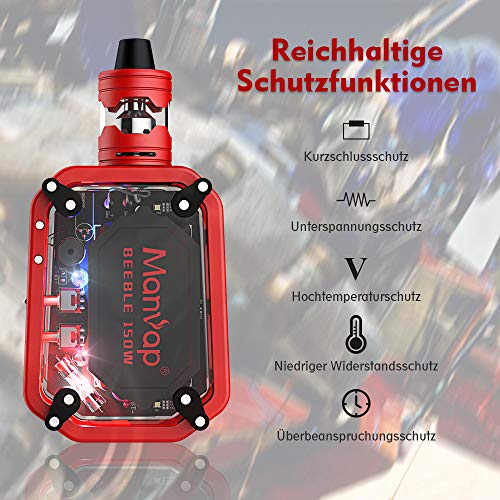 Manvap E Zigarette Starter Set 150W, Elektronische Zigaretten 0,4Ohm/2ml TF Verdampfer, E Shisha Smart Regenbogen LED…